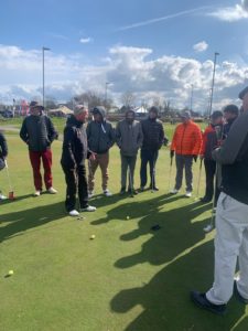 Na een introductie en vragen stellen gingen de 13 golfers met John naar de puttinggreen. waar er nuttige tips gegeven werden.